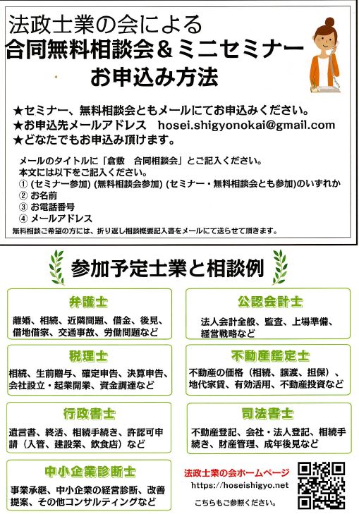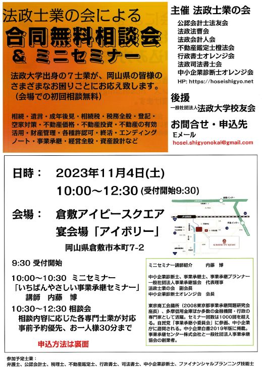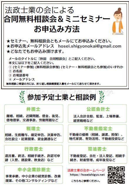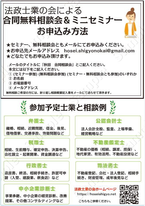 法政士業の会による合同無料相談会&ミニセミナー