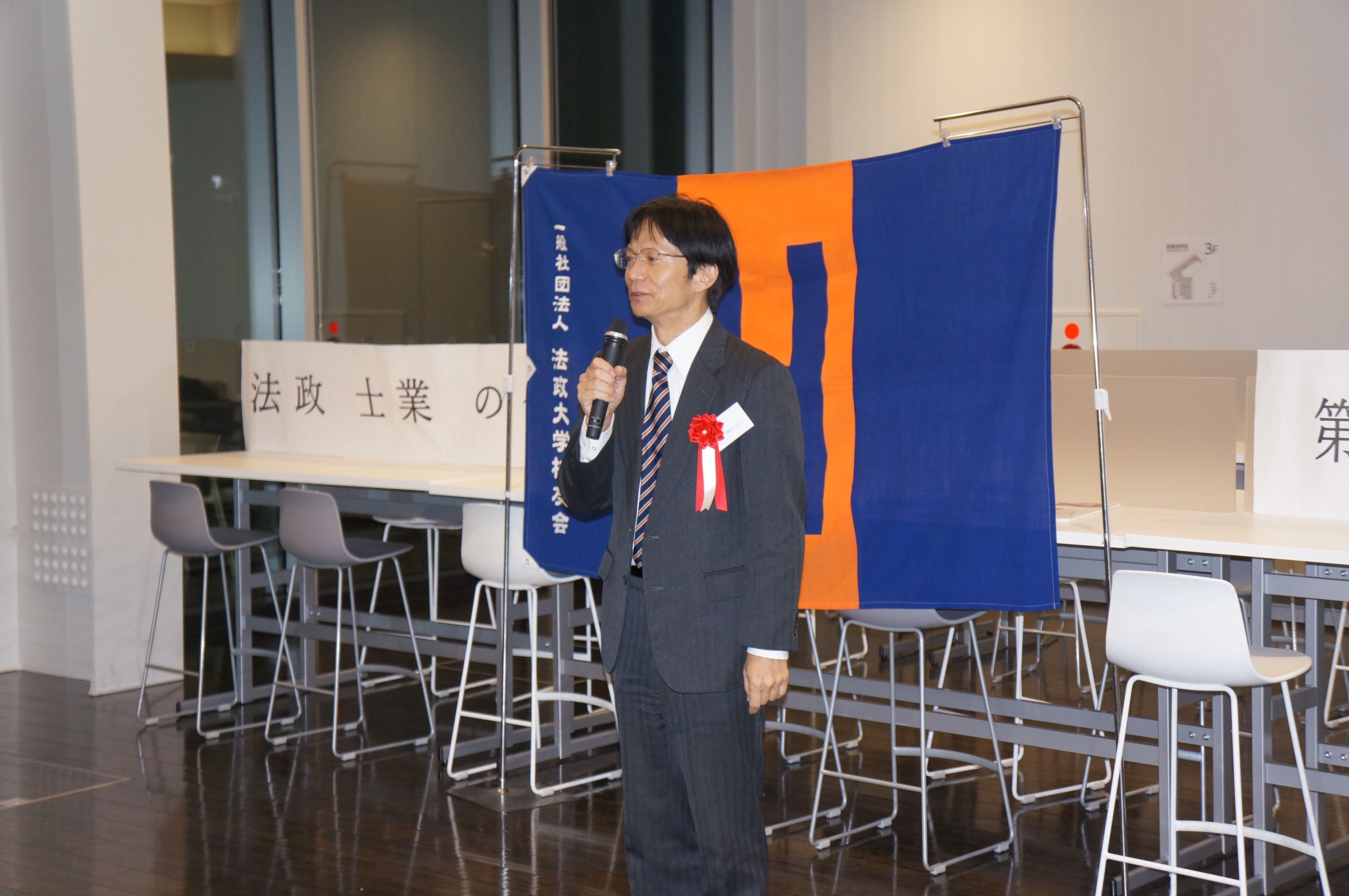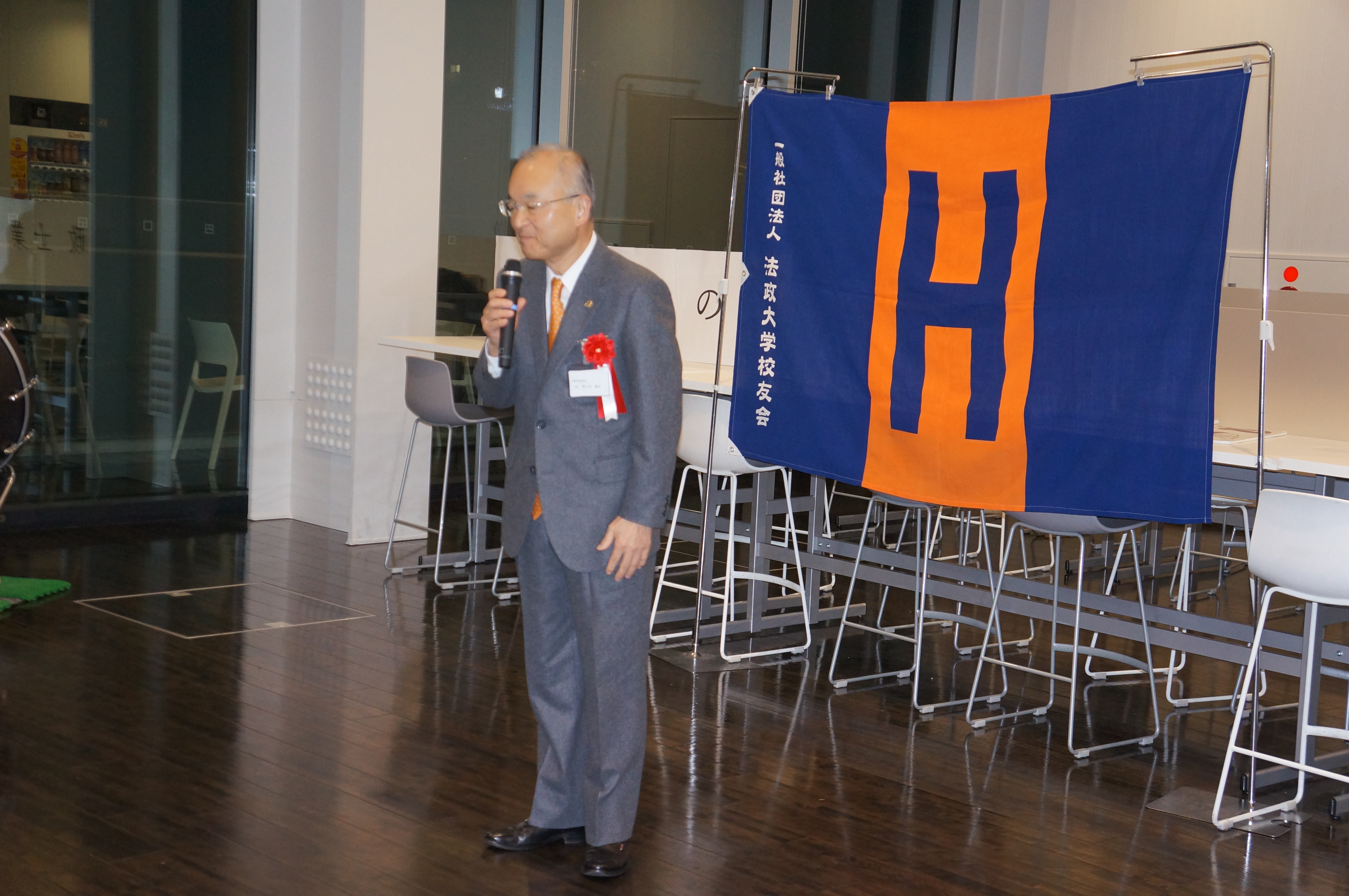 その後和食克雄副会長より乾杯のご発声があり、各会(公認会計士法友会、法政法曹会、法政会計人会、不動産鑑定士橙法会、行政書士オレンジ会)のPRとなりました。